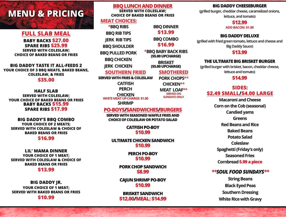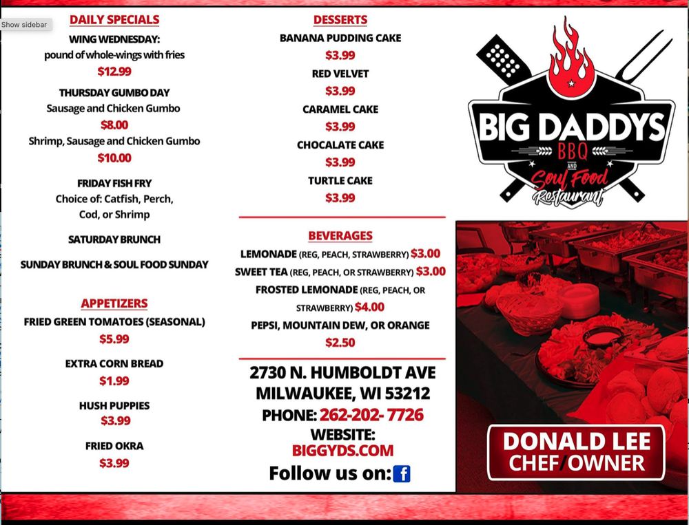 Welcome to Big Daddy's BBQ and Soulfood, where every dish is a celebration of flavor and soul. Nestled in Milwaukee, this black-owned, women-led eatery specializes in authentic barbeque and soul food, offering a menu that pays homage to traditional culinary roots while embracing modern twists.